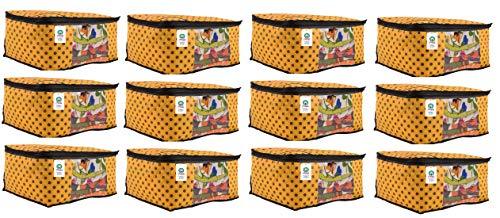 जयपुर क्राफ्ट्स 12 पीस पोल्का डॉट्स गैर बुना साड़ी कवर सेट, पीला (45 x 35 x 21 सेमी)