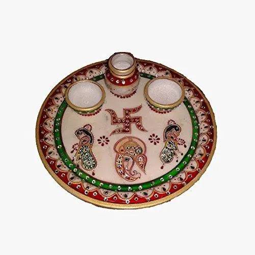 जयपुर क्राफ्ट्स भगवान गणेश मयूर संगमरमर पूजा और थाली सेट के साथ (4 टुकड़े, बहुरंगा)