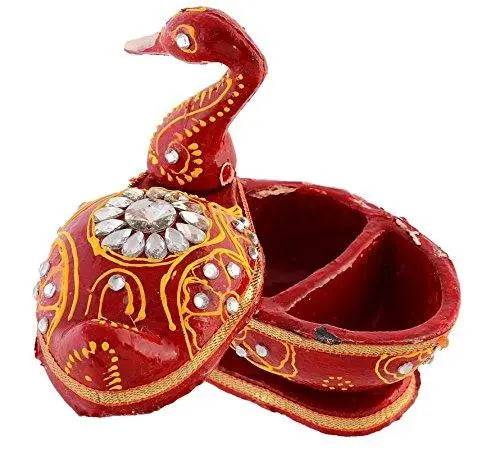 जयपुर क्राफ्ट्स पारंपरिक मयूर रोली टीका चोपड़ा सजावटी वस्तु (लाल, 9 सेमी)