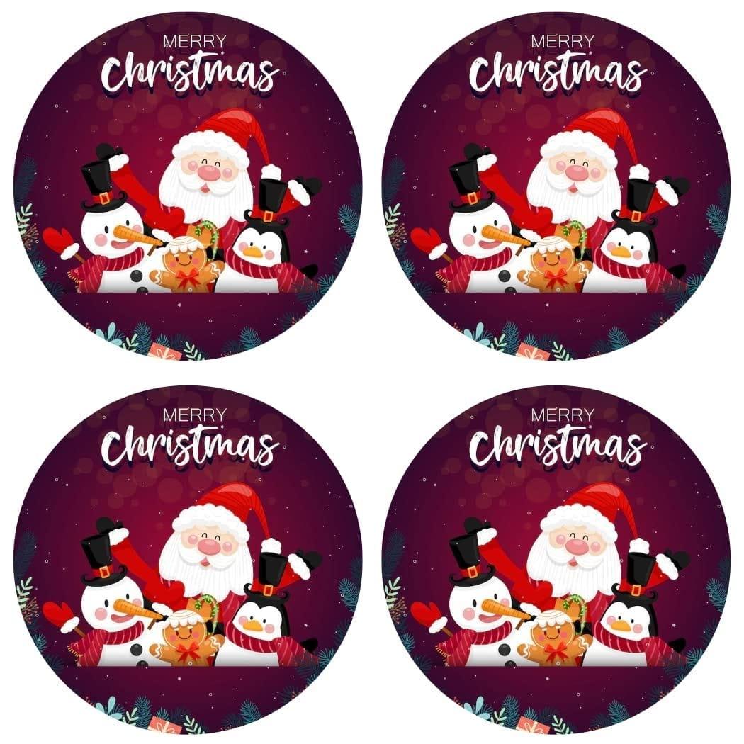 Webelkart® Premium"Merry Christmas" Wood Tea Coasters for Drinks Dining Table Set of 4 | Christmas Gifts Items (3.5 Inches)