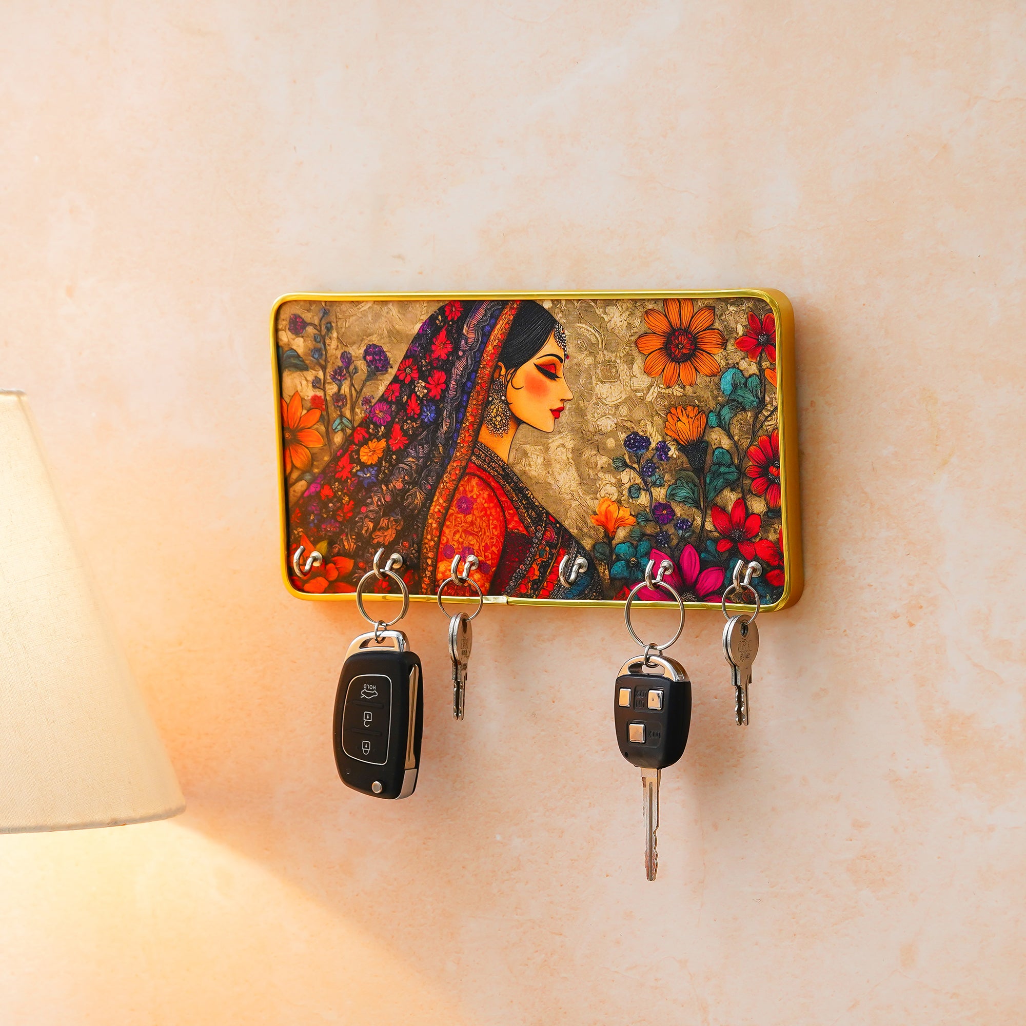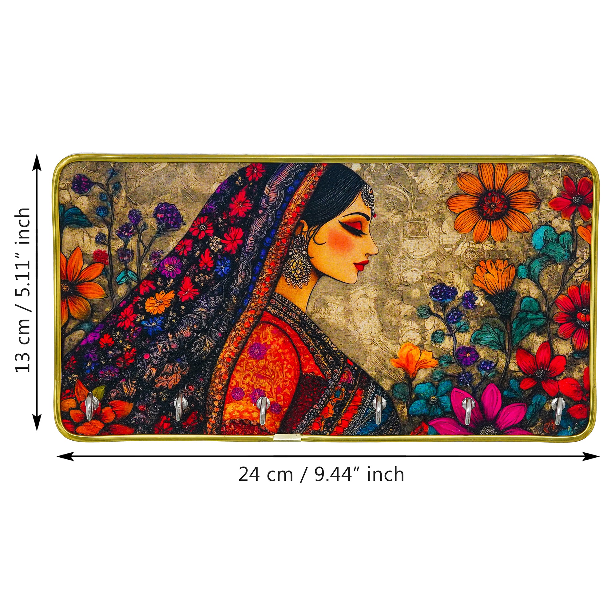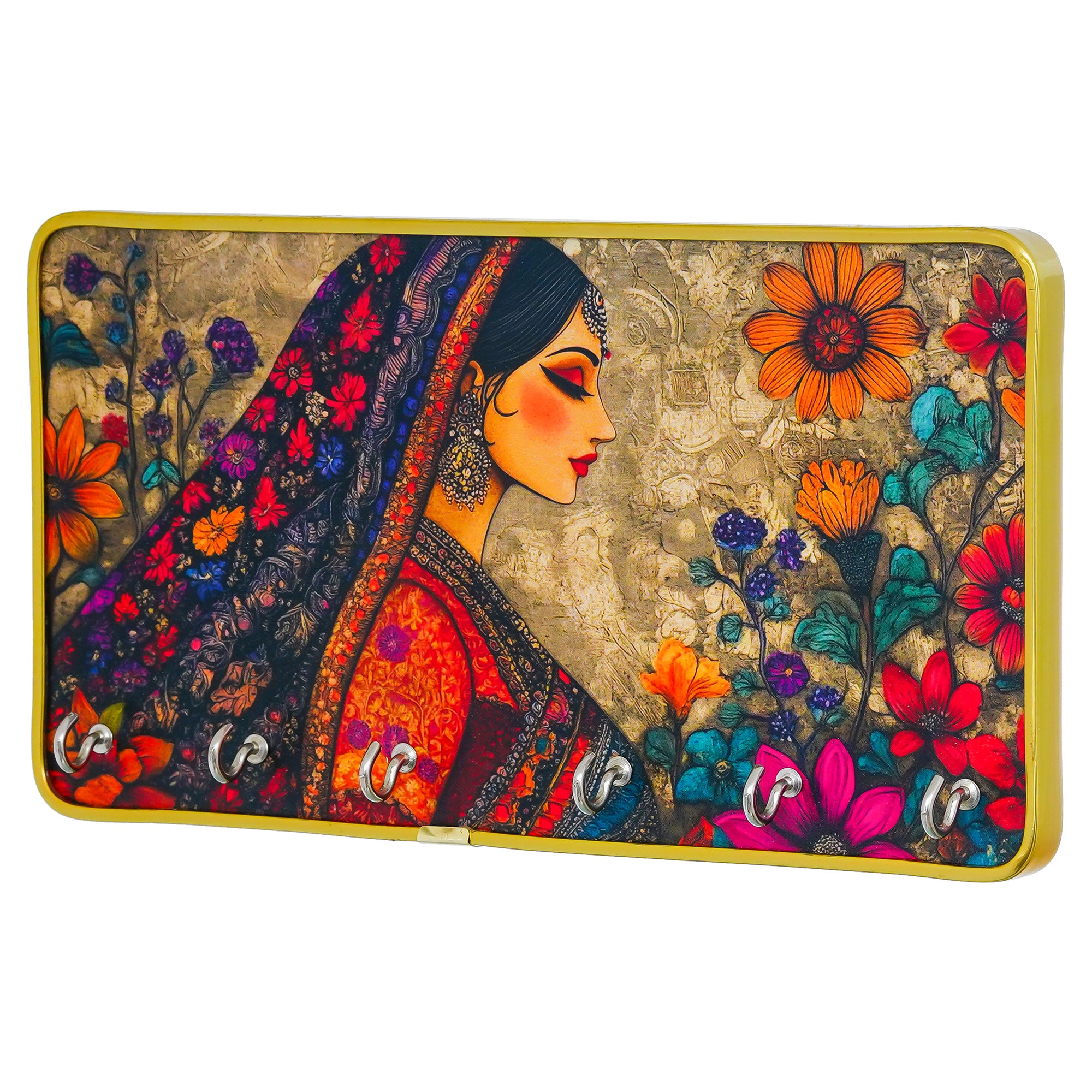 Webelkart Premium Decorative Wooden Rajasthani Lady Key Holder for Home and Office Decor, Key Hanger for Wall Decor (10" Inches)