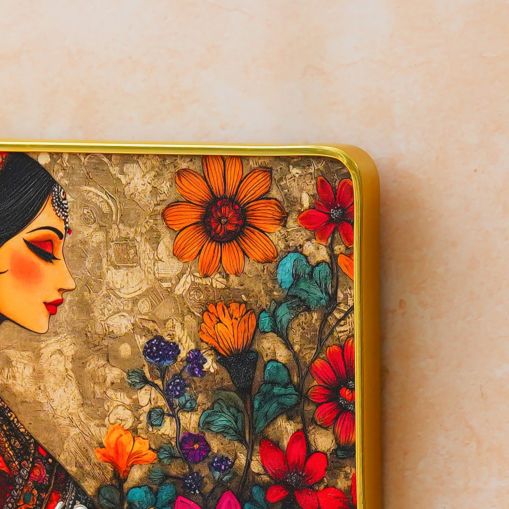 • ARTISTIC DESIGN: Beautiful wall-mounted key holder featuring vibrant floral artwork with orange and red blooms against a metallic gold background