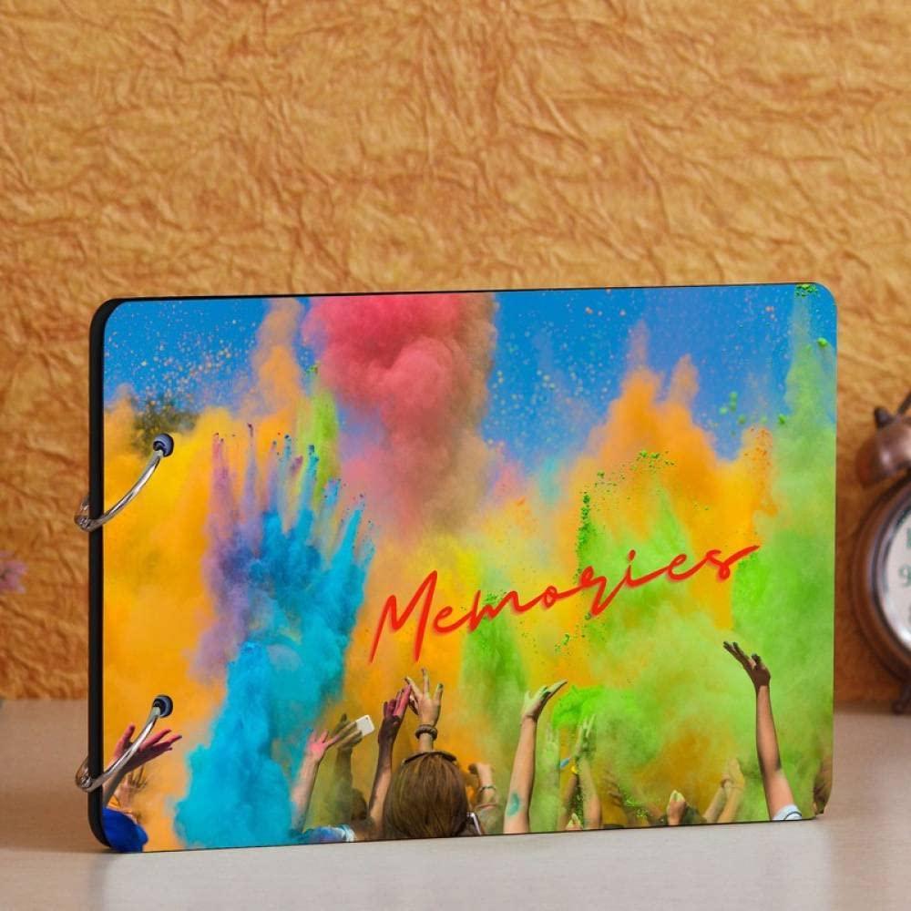 Webelkart Premium Holi Wooden DIY HD Printed Photo Album Scrapbook Memory Book, Photo Album- 25.40 cm x 17.78 cm x 4 cm (30 Sheets) Holi Album