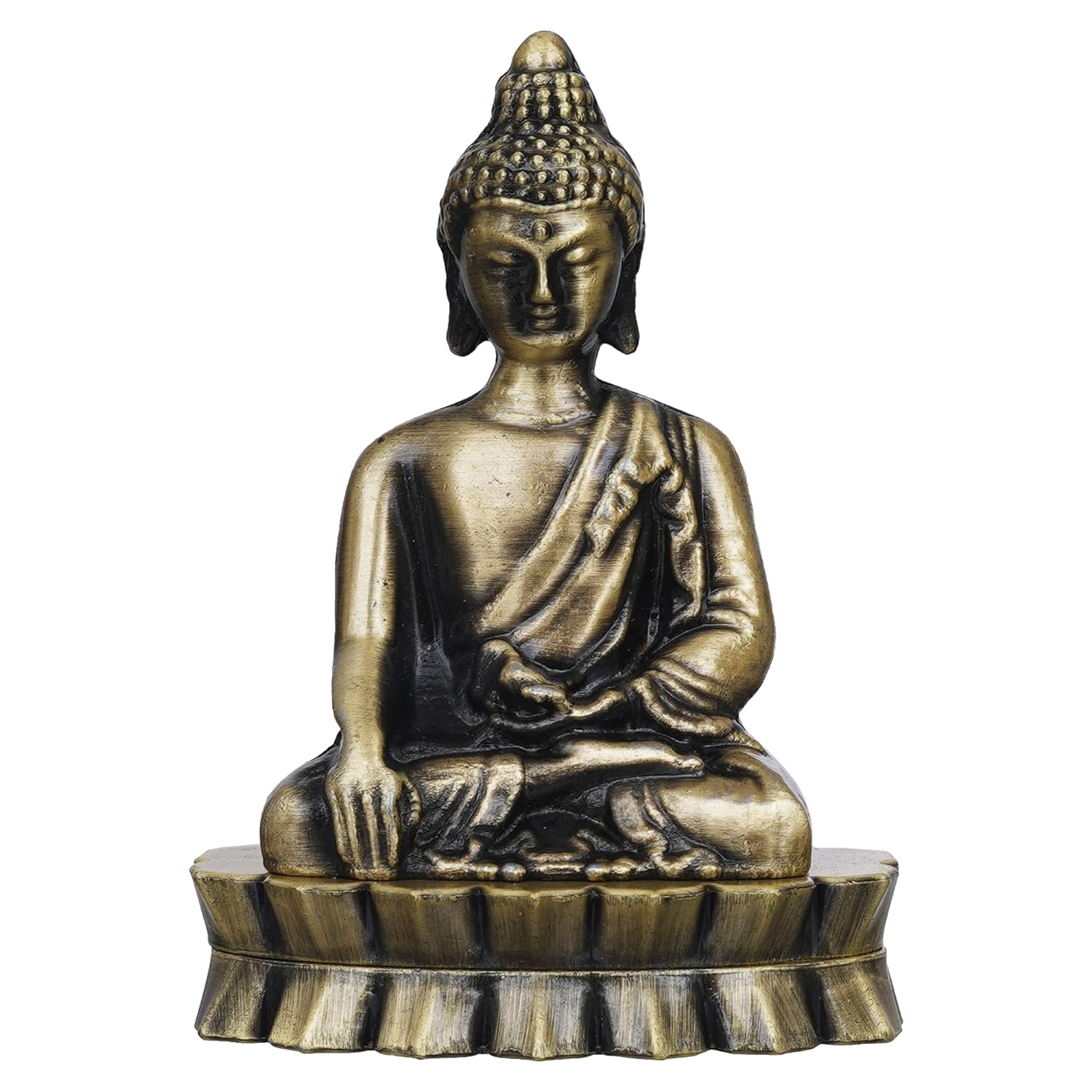 Package Includes: One Unit of Sitting Lord Buddha Statue Showpiece for Home Decor Material: Plastic with a Gold Metal Finish Dimensions (L x W x H): 9 cm x 3.5 cm x 6 cm | Weight: 300 gm Ideal for enhancing the aesthetic appeal of your home, office, living room,...