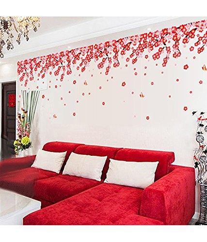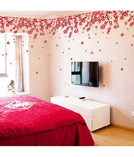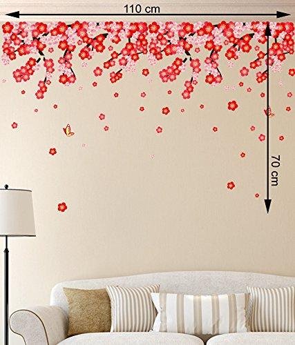 Decals Design StickersKart Wall Stickers Flowers Pink & Red Romantic Cherry Wedding Decoration Living Room Backdrop (Multicolor)