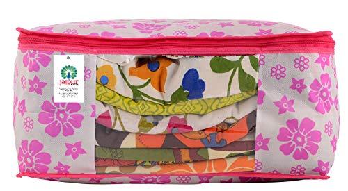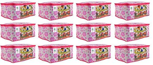 JaipurCrafts 12 Pieces Flowers Print Non Woven Saree Cover Set, Pink (45 x 35 x 21 cm)