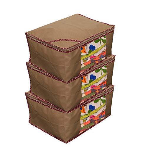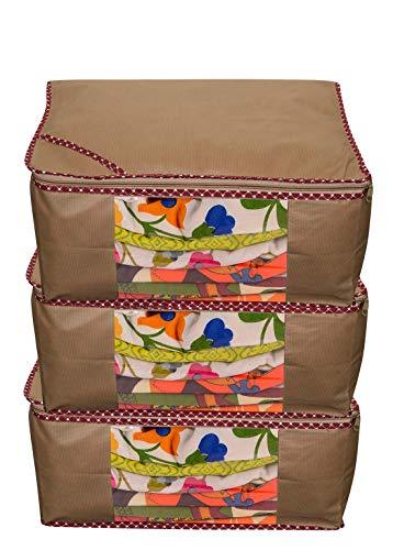 JaipurCrafts 3 Pieces Non Woven Saree Cover Set, Beige (45 x 35 x 22 cm)
