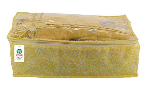 JaipurCrafts 6 Pieces Flower Print Non Woven Saree Cover Set, Gold (45 x 35 x 23 cm)