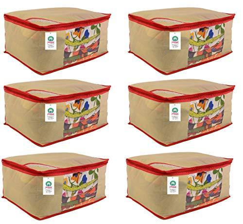 JaipurCrafts 6 Pieces Non Woven Saree Cover Set, Beige (40 x 30 x 20 cm)