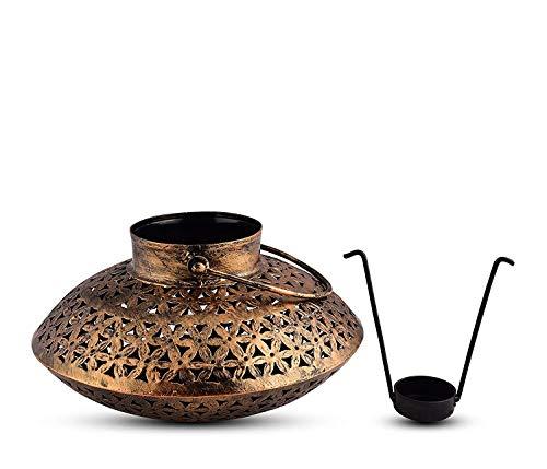 Details: JaipurCrafts offers an Antique Designed rustic Bronze Colour, Matki Shape lantern or Dia. Beautifully lits up the room with shadows of the cut work in the metal, Can be a piece of art/decor/symbolises our beautiful culture & Tradition. Appropriate for gifting as well; Can also be hung up to enhance the decor. Even after incessant burning for long hours, this diya does not get heated up. This diya is very attractive and worth purchasing for personal use or for gifting purpose.