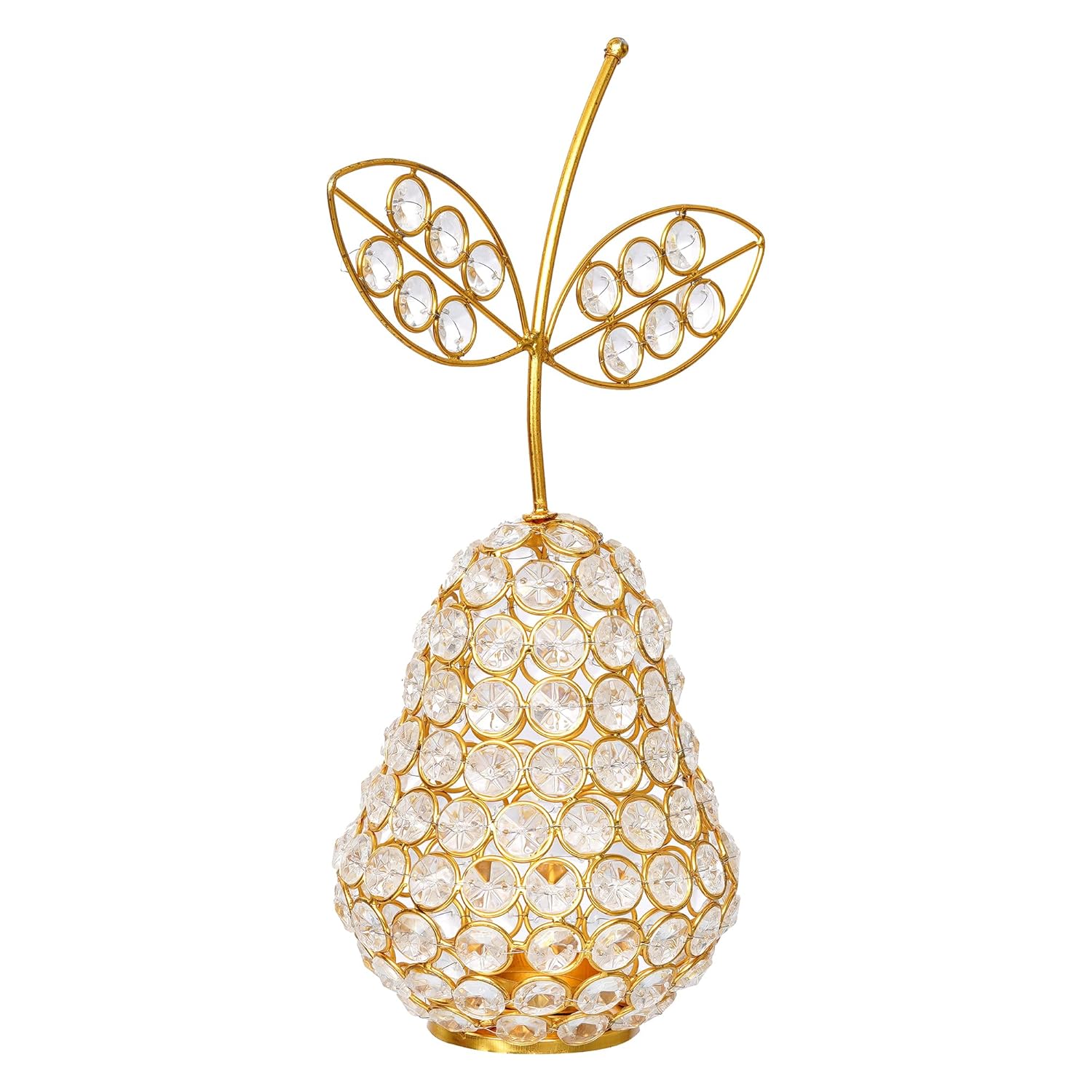 JaipurCrafts Premium Apple Shape Crystal Brass Tealight Candle Holder for Home Decoration |Tealight Candle Holder for Diwali Decor | Candle Holder for Table Decor (8.5" Inches Gold)
