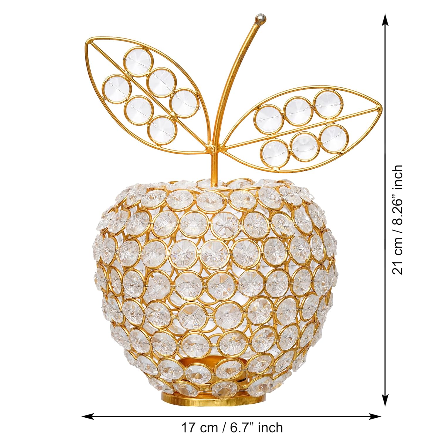 JaipurCrafts Premium Apple Shape Crystal Brass Tealight Candle Holder for Home Decoration |Tealight Candle Holder for Diwali Decor | Candle Holder for Table Decor (8.5" Inches Gold)