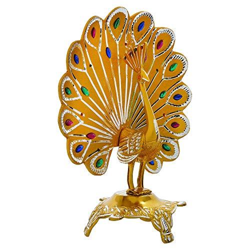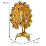 JaipurCrafts Premium Golden Aluminum Minakari Peacock Figurine Showpiece- 12 in