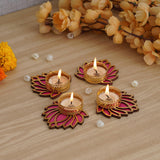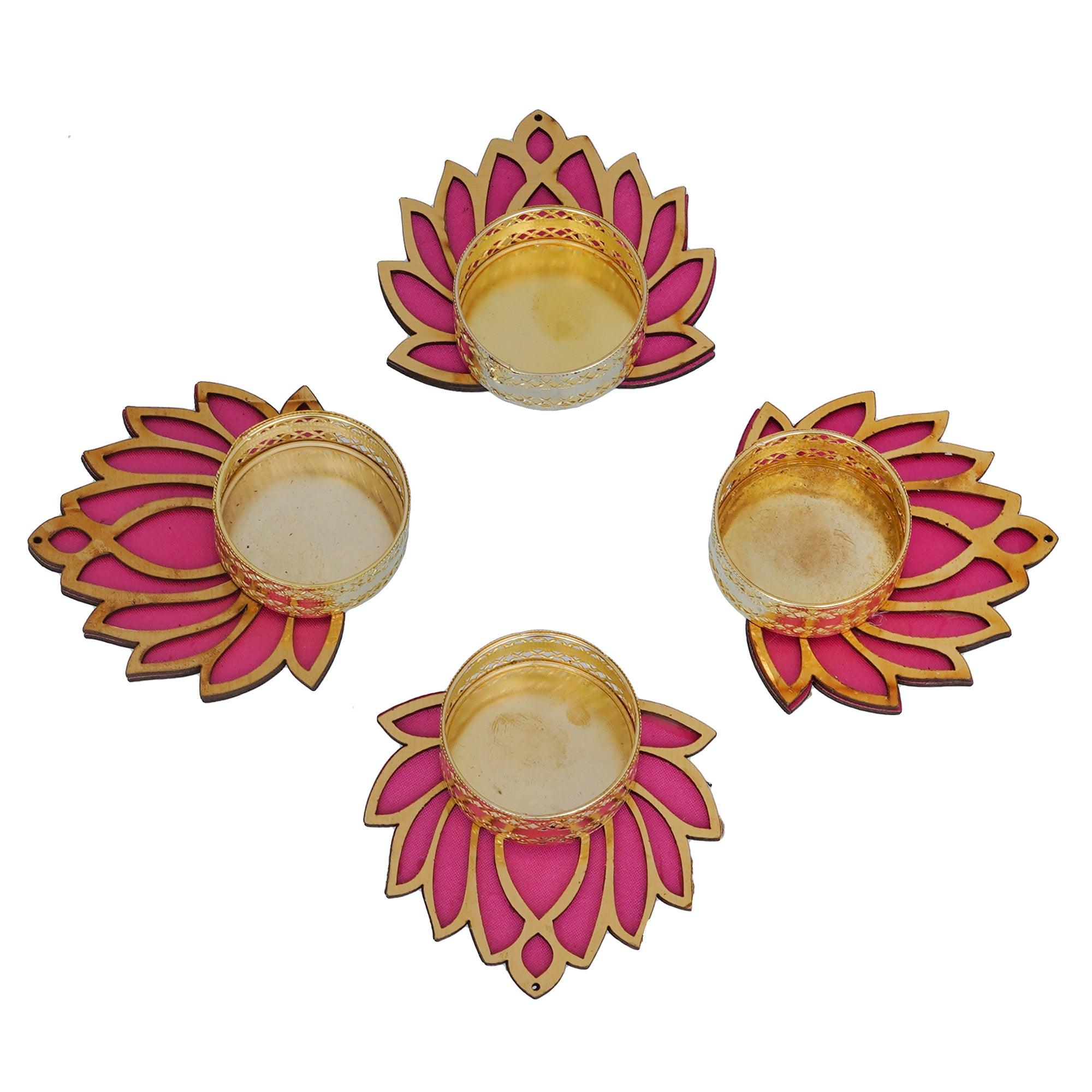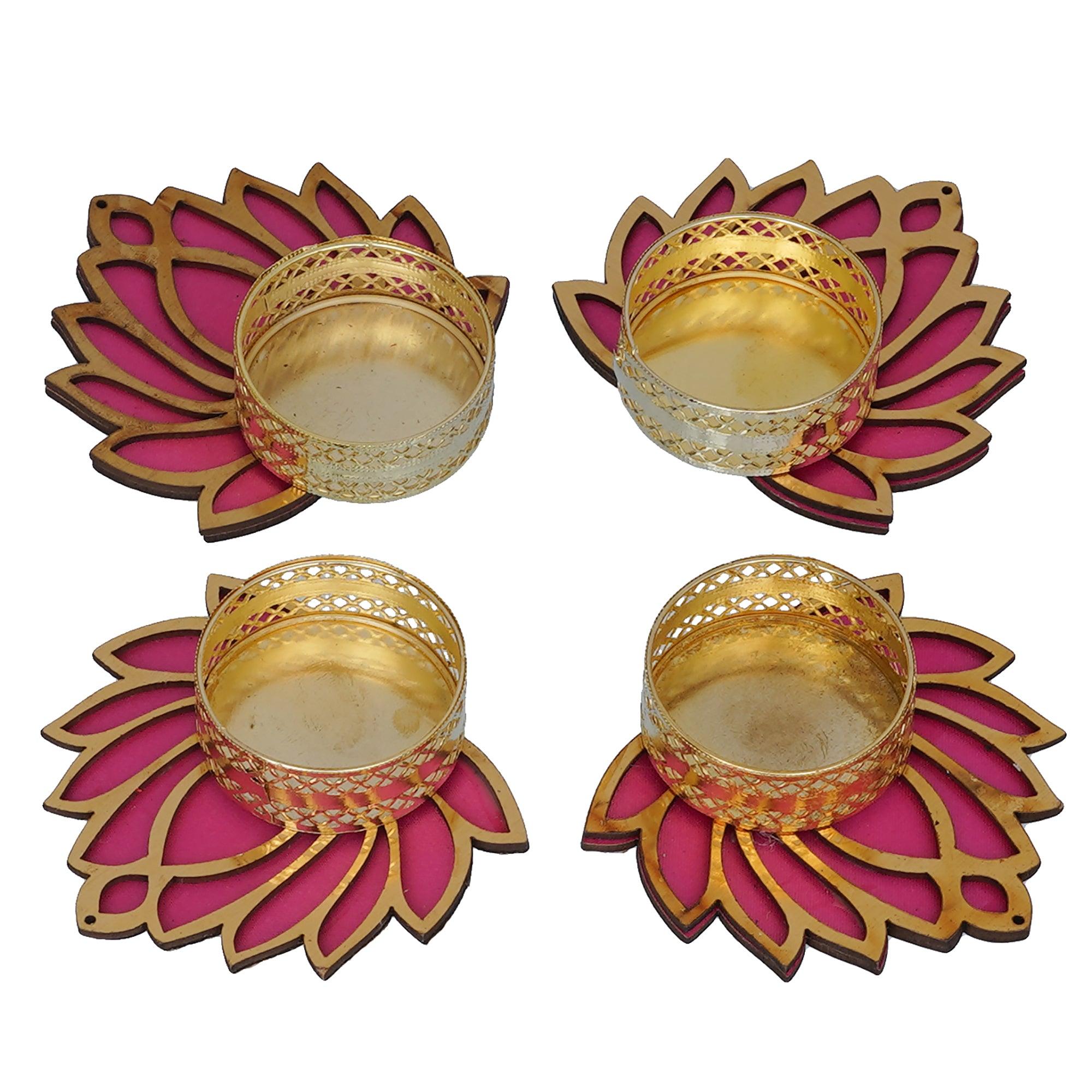 JaipurCrafts Premium Set of 4 Lotus Shape Tealight Candle Holder for Home and Office Decor | tealight Candle Holder for Diwali Decorations | Diwali Candles for Decorations Pack of 4 , 3 Inches