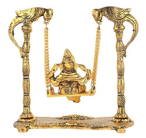 JaipurCrafts Premium Spiritual Lord Ganesha On Jhula Figurine of Lord Ganesh, White Metal Statue,Valuable Collectible feng Shui Gifts- 17 cm