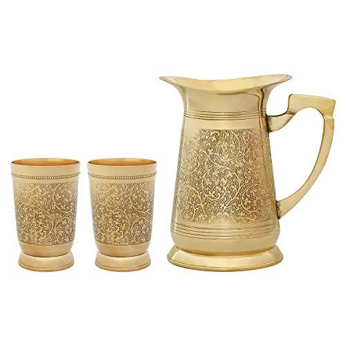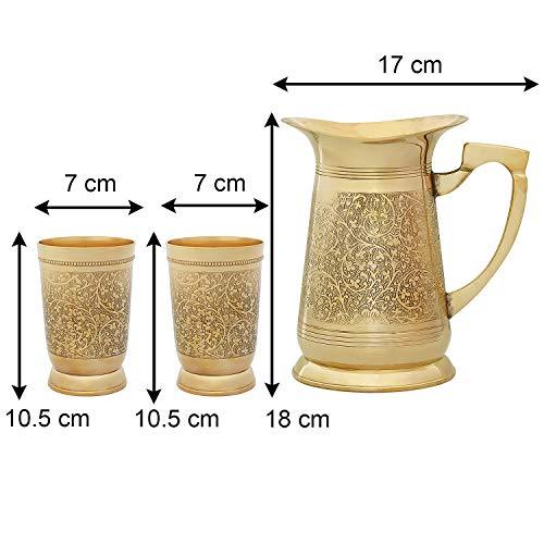 Brand: JaipurCraftsColor: GoldFeatures: Brass Handmade Design Jug, Material: Brass, Color: Gold, Weight: 1180, Volume: 2000, Height: 7.5, Width: 17 On the Occasion of Diwali, Christmas, Anniversary, Birthdays these items can be readily turned into a wonderful Gift Item. These items have antique elegant design that gives addition to you Home...