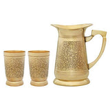 JaipurCrafts Pure Brass Modern Art Jug, Travelling Purpose, Yoga Ayurveda Healing, 2000 ML with 2 Glasses