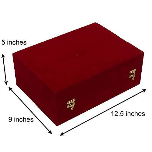 Details: JaipurCrafts Brass items have antique designs. The item is highly durable, elegant and a wonderful addition to your Home Decor. It comes in a Fancy red/blue colored gift box and can be readily turned into a wonderful Anniversary, Wedding, Diwali, Valentine gift item. CARE TIPS Dusting - First, use a soft brush or clean cotton cloth to dust. Removing Candle Wax - Candle wax can be removed from a silver holder by simply running hot water over the area containing the wax. The softened wax should be easy to pry out with a finger. Never risk scratching the piece by using a knife or other sharp object. Washing and Drying - Once all dust and wax are removed, wash the item by hand with warm water and a gentle dish washing soap to remove any food but don't soak the silver in water for any length of time. Rinse the piece well with clean water, distilled is best, and dry immediately with a soft, lint-free cloth. A hair-dryer set on warm helps to dry hard-to-reach places. After your pieces are clean and completely dry, wrap each of them individually with acid-free buffered tissue, butter paper or washed cotton, linen, or polyester to store. Do not use wool or newspaper, which can cause excessive tarnishing that will be difficult to clean, or even worse can remove silver plating. Safely Display Brass items in Your Home - If you'd like to display your Brass items rather than storing it, a glass-enclosed cabinet makes a good choice. Avoid unvarnished wood shelves that can omit harmful vapors and can cause tarnishing. Glass shelves are preferred over wooden shelves. You'll have to avoid displaying or storing silver near cotton felt, wool or velvet as well.