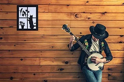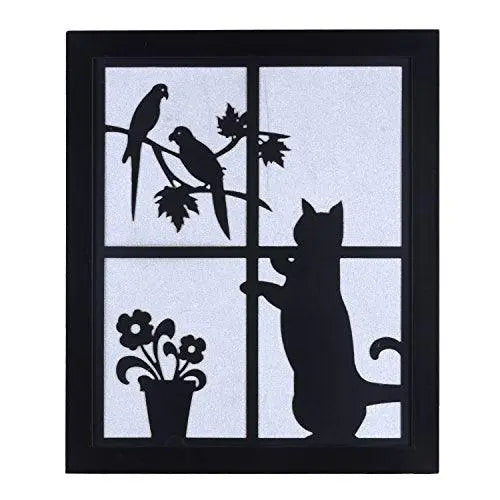 JaipurCrafts Wood Cat And Birds Designer Wall Art (Black, Silver, 44 Cm x 37 Cm)