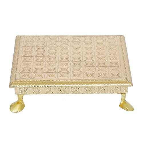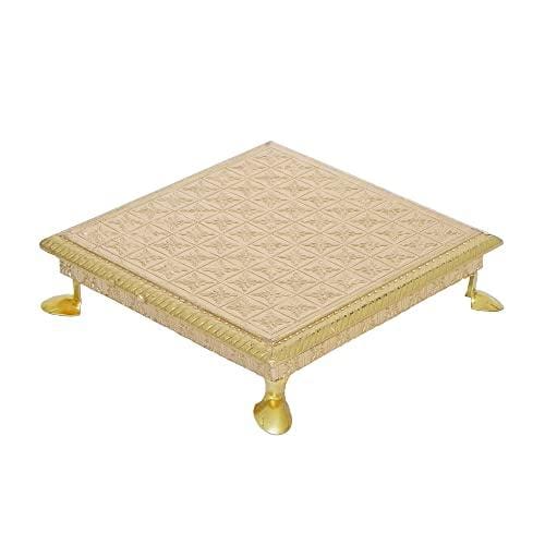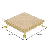 JaipurCraftsWooden Brass Fitted Golden Rajwadi Chowki/ Patla -7.50"x 7.50"x 2.00" Inch