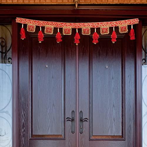 Premium Traditional Plastic Beads Swastika Handmade Door Hanging/Bandarwal/Toran for Door, Traditional Bandarwal for Door, 43" inches Length, Multicolour,