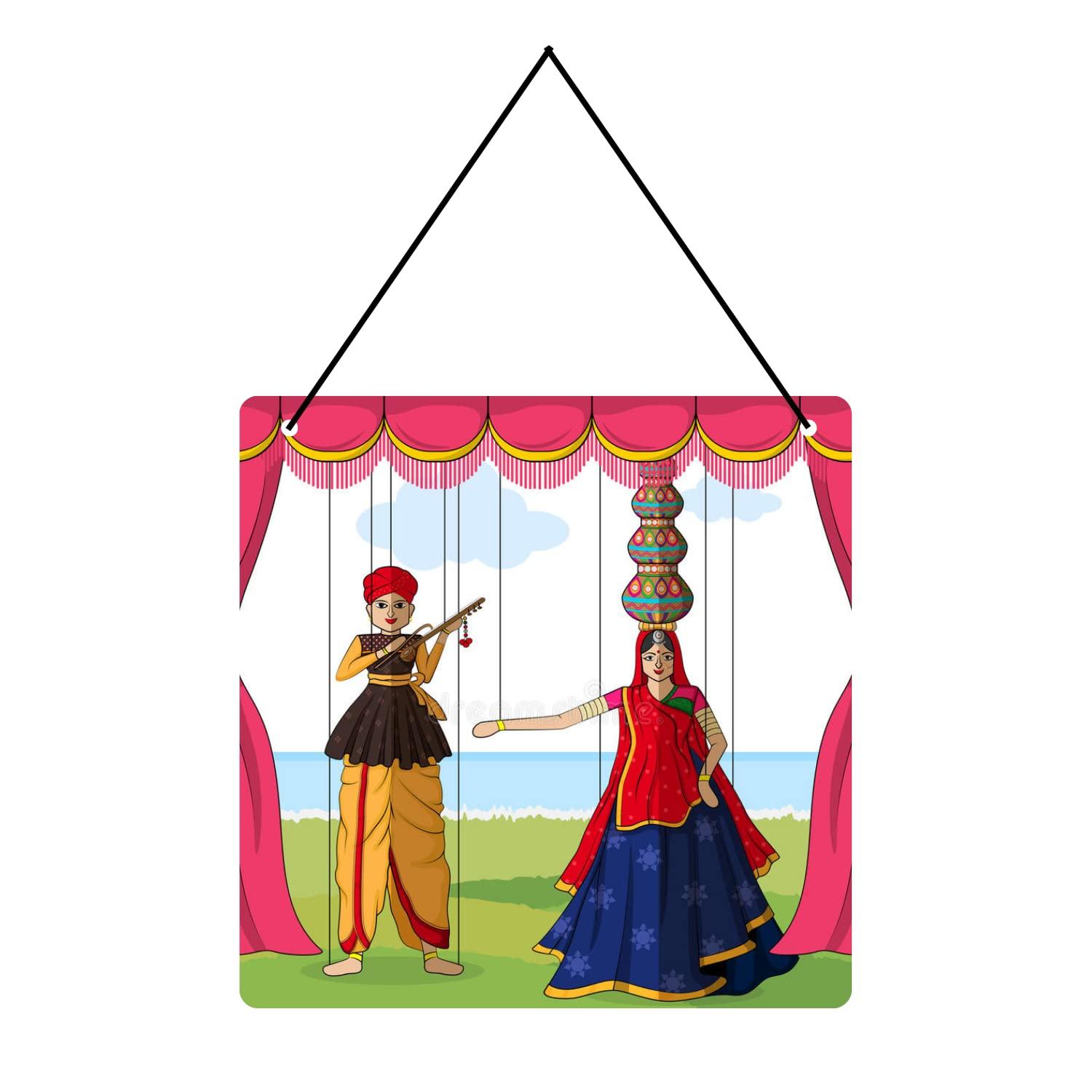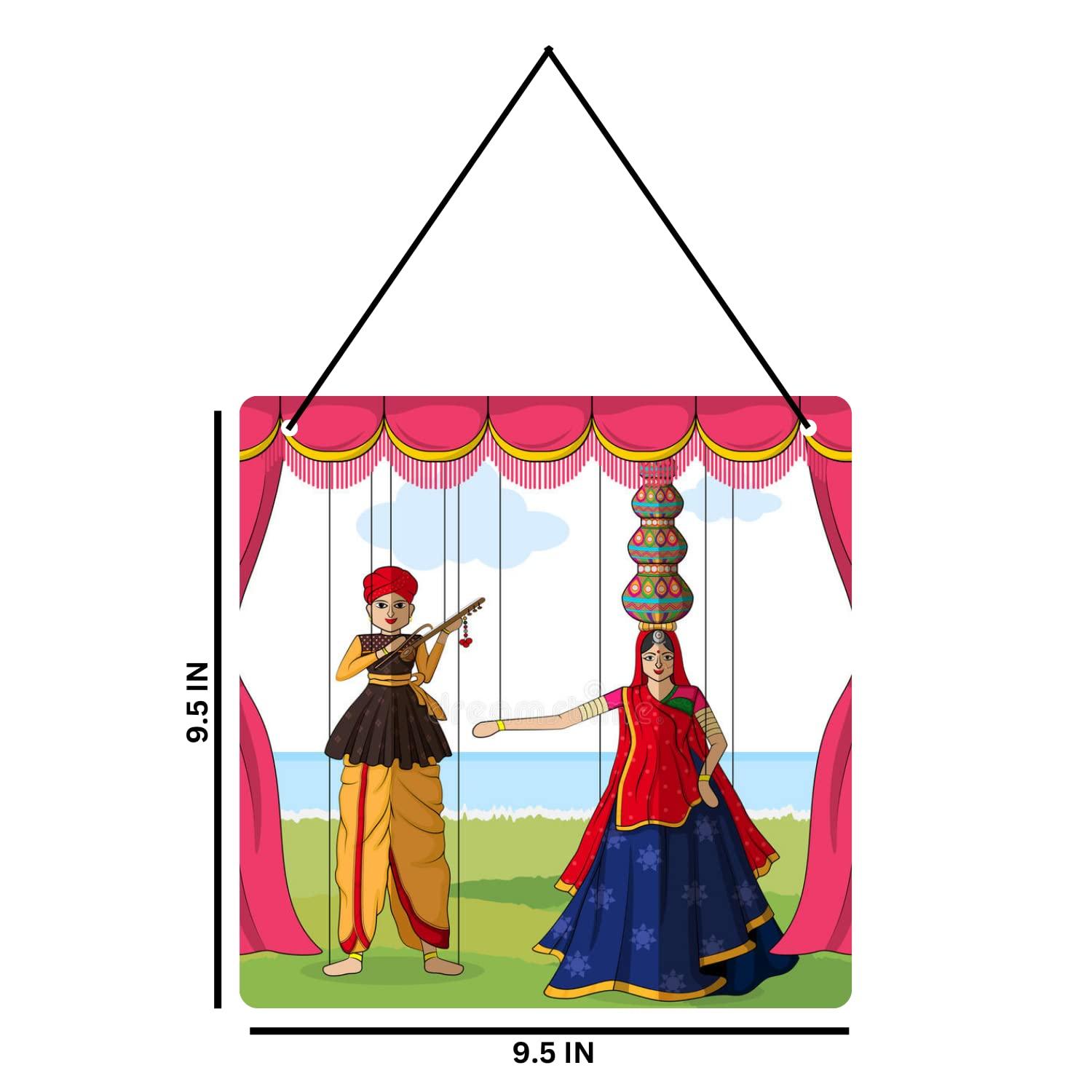 Webelkart®️ Decorative Rajasthani Musician Art Welcome Wall Hanging Wooden Art Decoration Item for Living Room |Rajasthani Wall hanging | MDF Wall Sculpture-9.5 IN