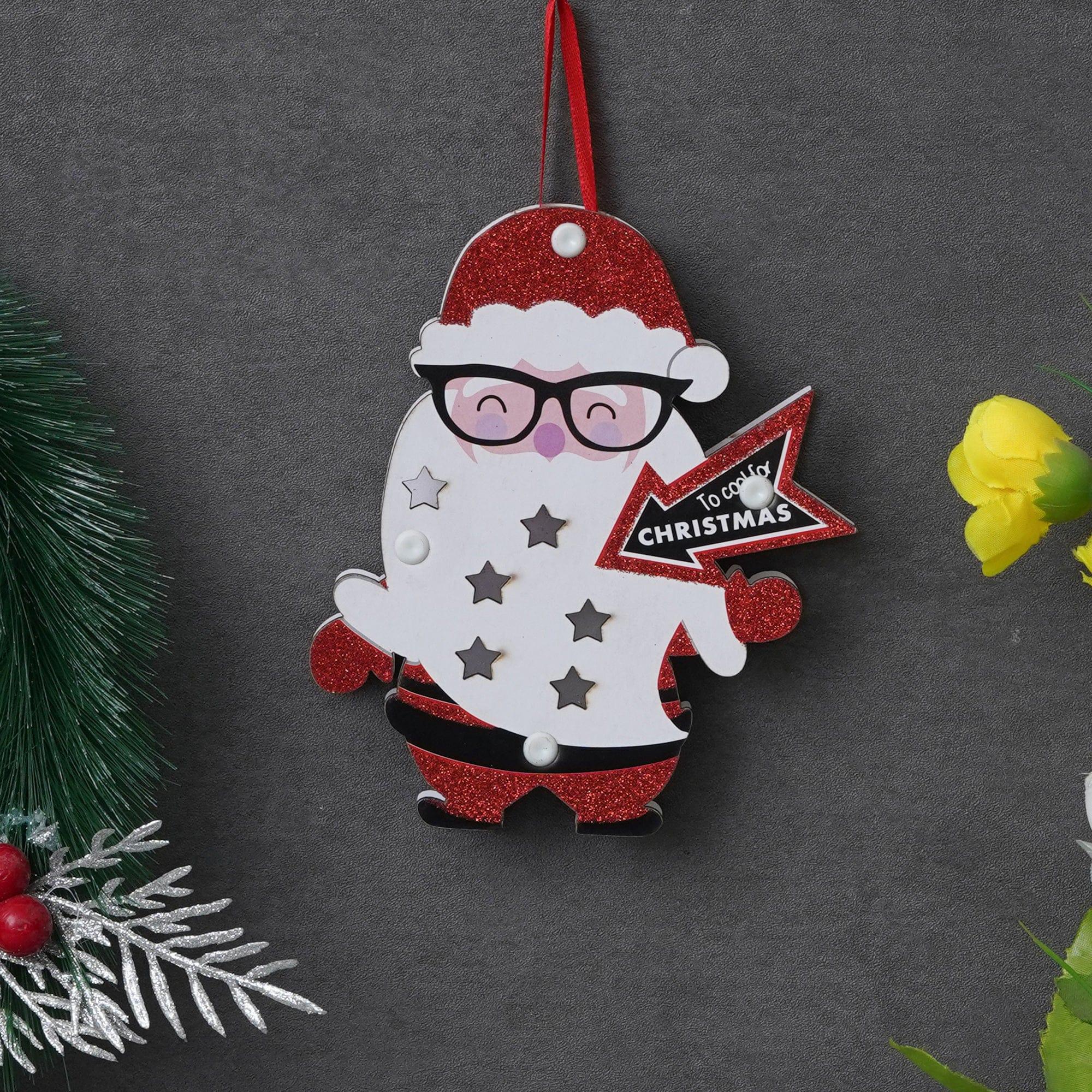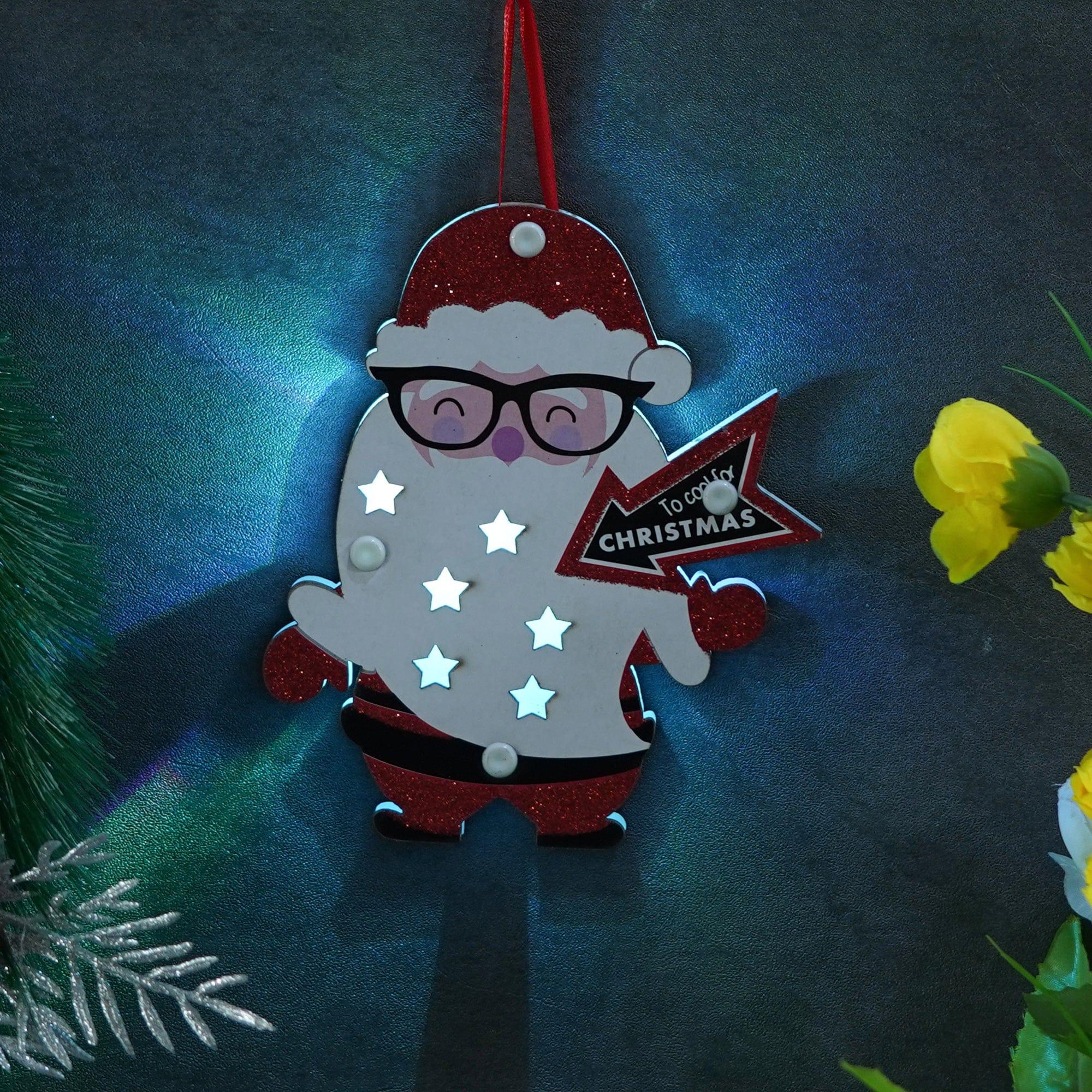 Webelkart® Premium LED Santa Claus Christmas Ornament Wooden Hanging Pendant Ornament Tree Hanging with LED Lights- 6 Inches