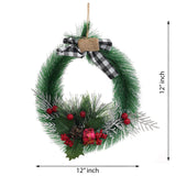 Webelkart® Premium Round Holy Wreath Santa Claus Christmas Wall Hanging and Decoration Items|Christmas Gift Items| Red Berries Holy Wreath (12 Inches)
