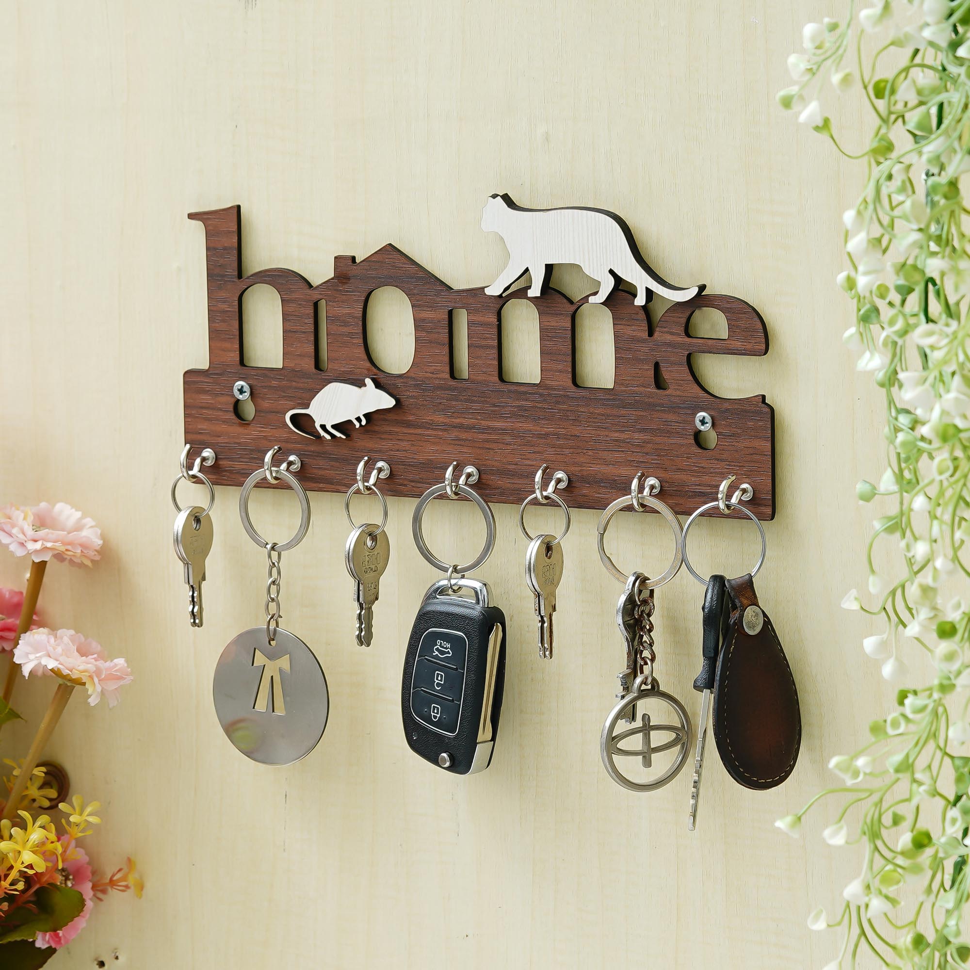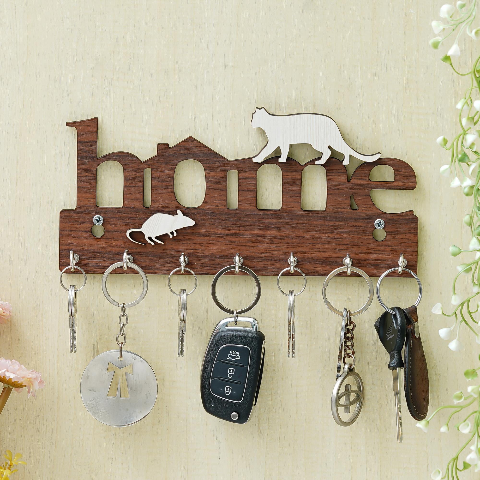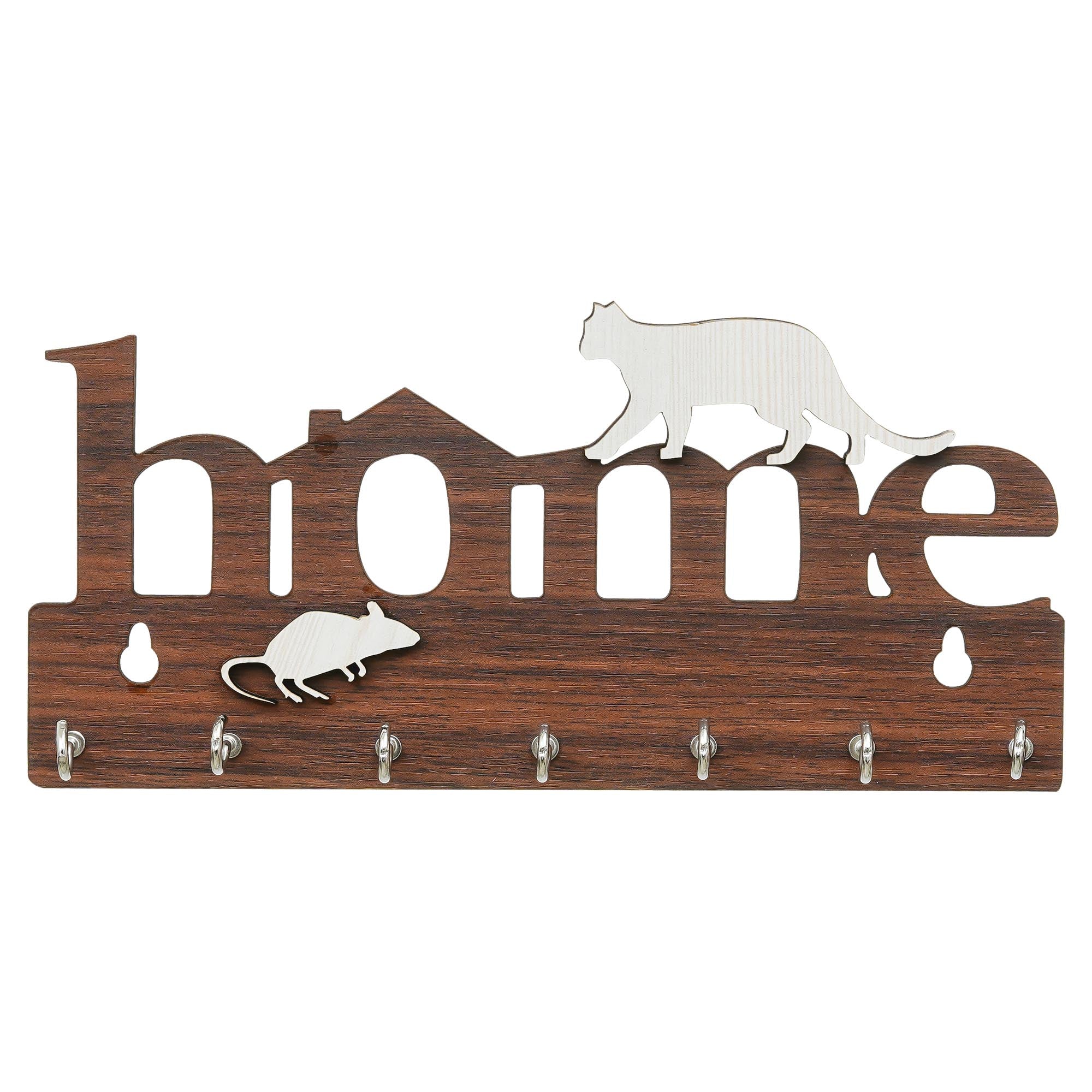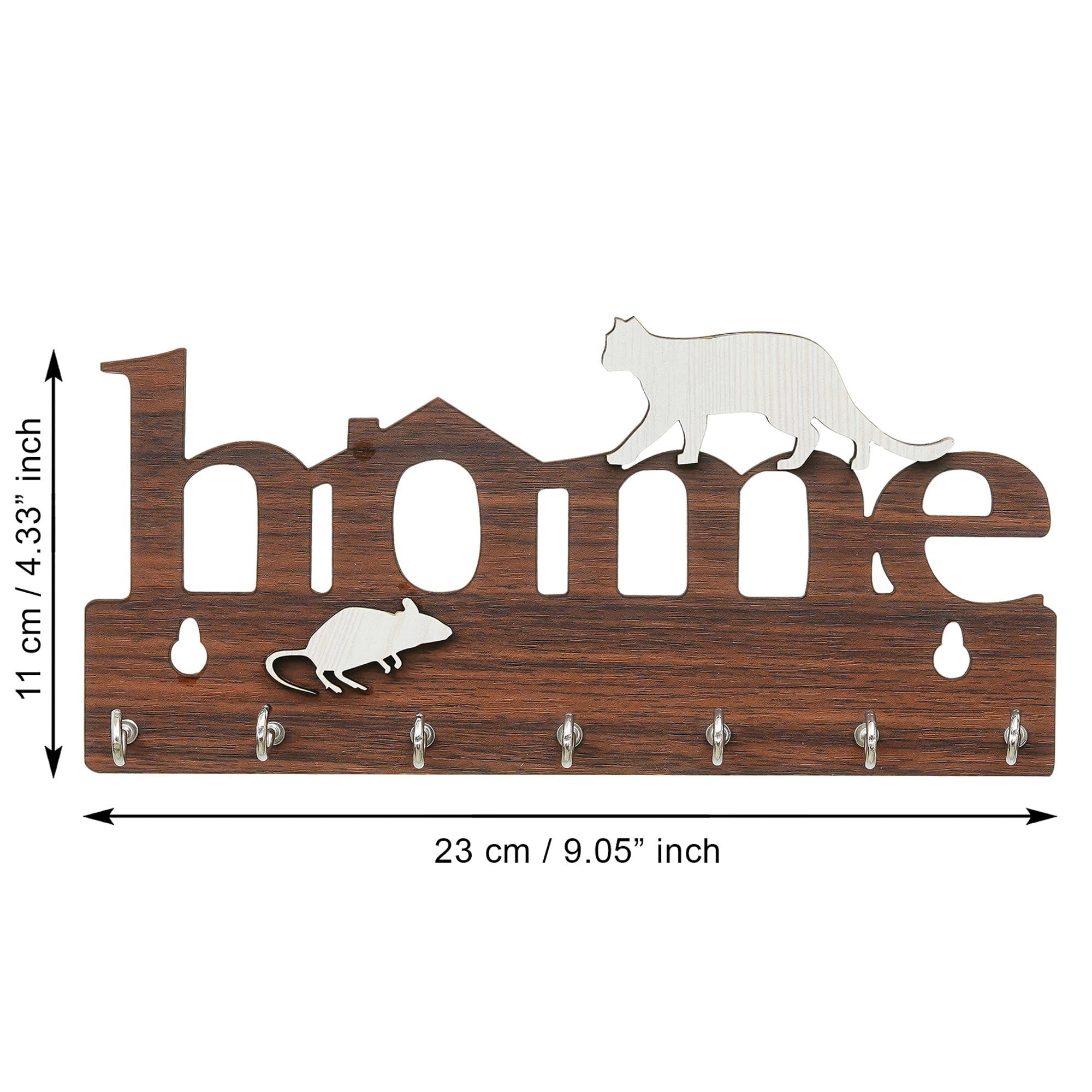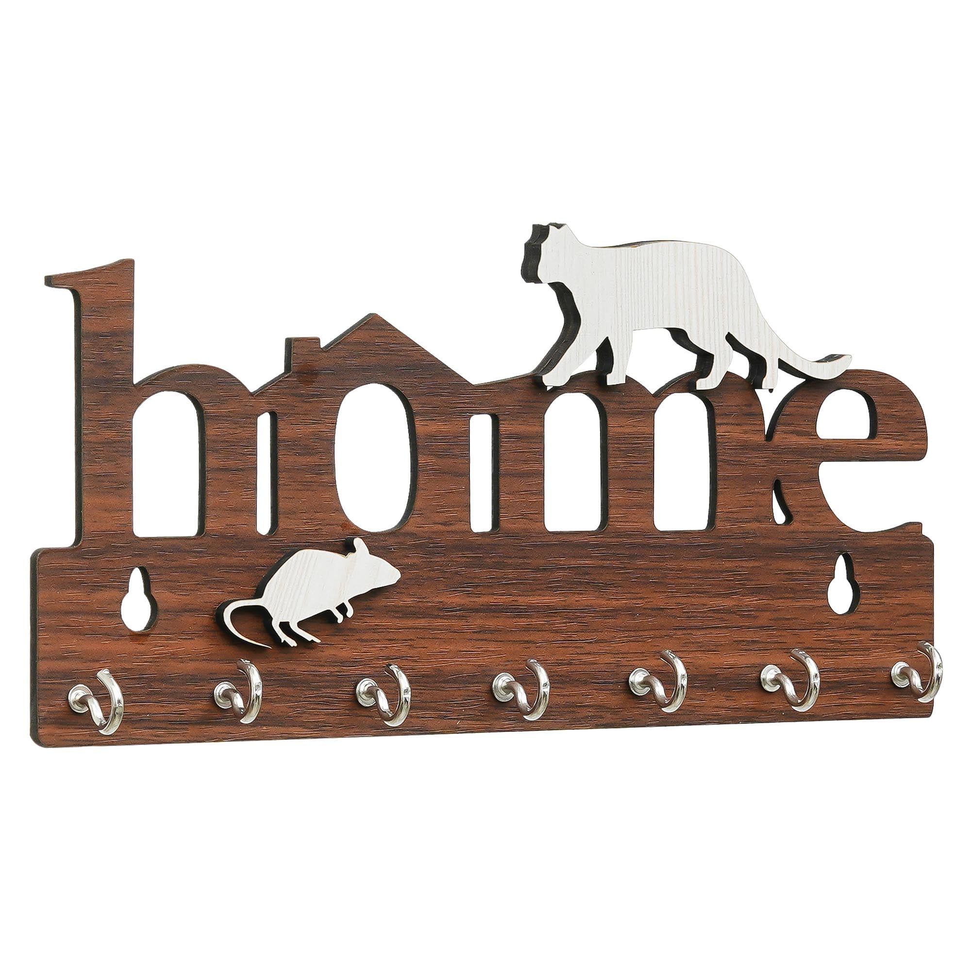 Webelkart Antique Home with Cat Designer Wooden Key Holder for Home/Office Decor,Key Chain Hanger Decorative Items for Home Decor (9.5" Inches Brown)
