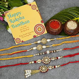 - Package Contains : 5 Rakhi, 1 Packet Roli Chawal, 1 Best Wishes Card