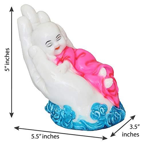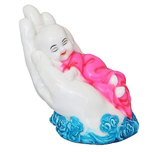 Webelkart Cute Child Monk Sleeping on Palm Showpiece - 12 cm (Polyresin, Multi)- for Home Decor| Office Decor| Valentines Day Gifts | Diwali Decor| Vaastu Decor| Fengshui