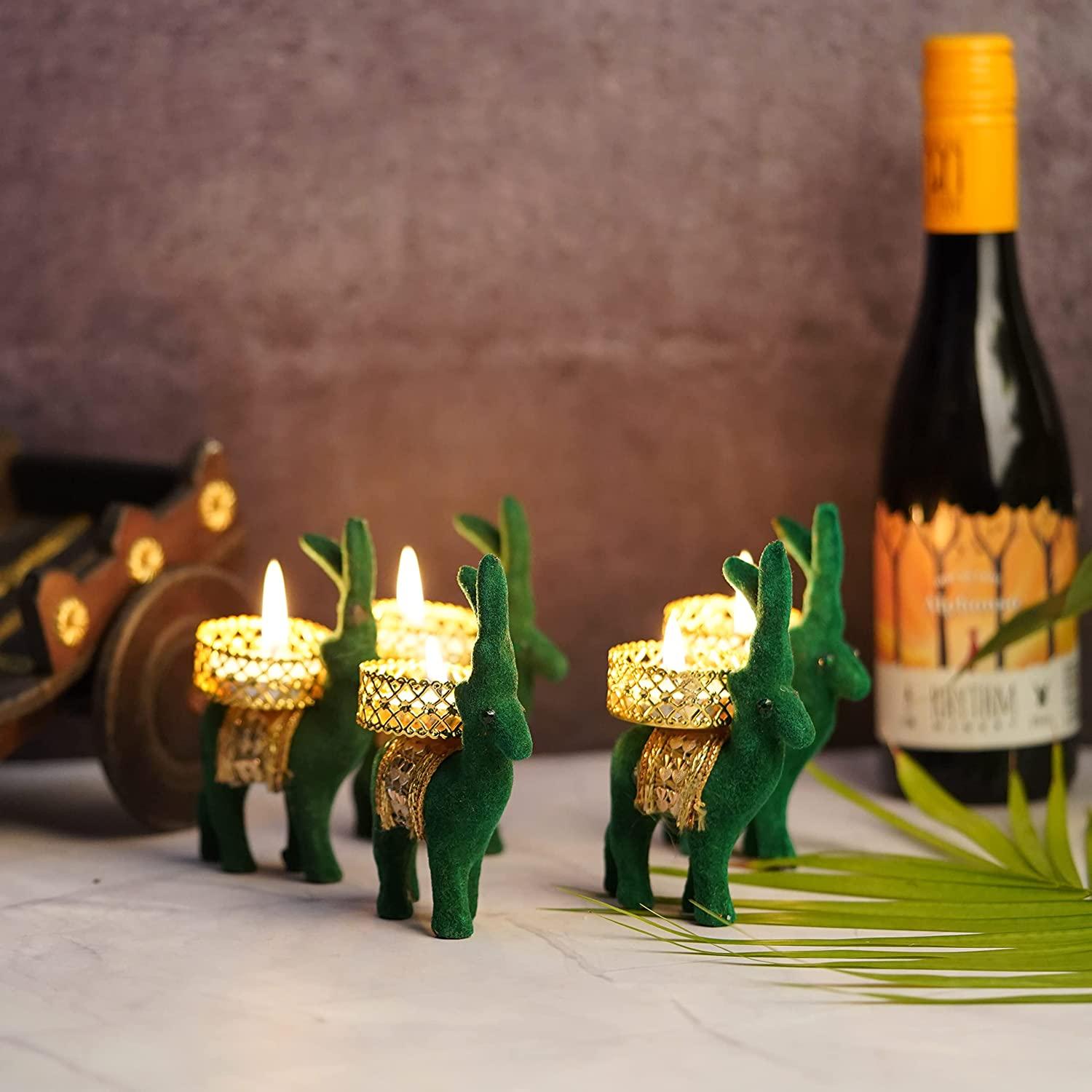 Webelkart Cute Christmas Reindeer Tealight Holder - 5 pc (Green) Reindeer Shaped tealight Candle Holder for Home and Office Decor| Christmas tealight Holder