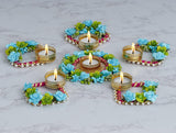 Webelkart Designer Unique Set of 5 Tealight Candle Holder for Home Decor, Mosaic Glass, Balcony Decoration Items Outdoor, Balcony Decor,Candle Stand,Flowers ( Pack of 5 , 9.5 x 6.5 Inches)