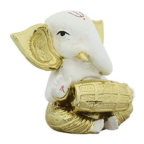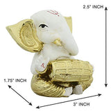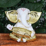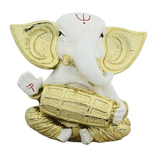 Webelkart Gold Plated Lord Ganesha Musician for Car Dashboard Statue Ganpati Figurine God of Luck & Success Diwali Gifts Home Decor (Size: 3.00 x 2.50 inches)