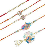 Webelkart Pair of 4 Rakhi For Brother, Bhaiya, kids and Bhabhi with Beautiful Gift Rakshabandhan Greetings Card/Bhabhi Lumba Rakhi/Krishna Rakhi/Rakhi Gifts