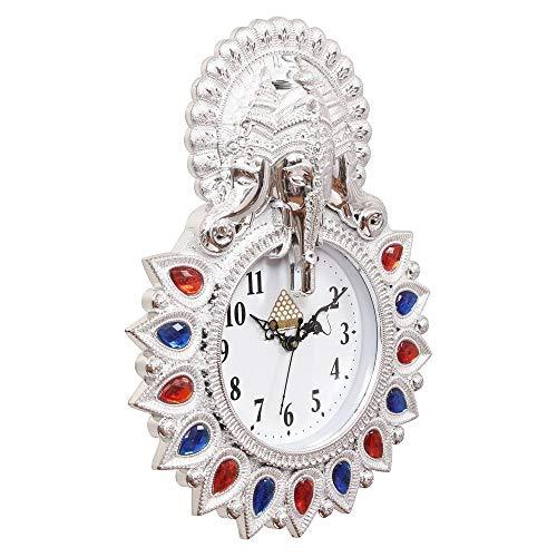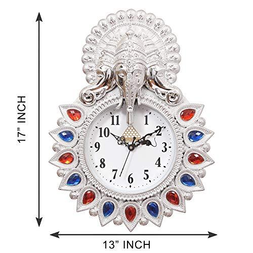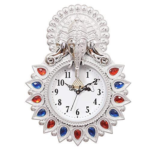 Webelkart Plastic Lord Ganesha Designer Wall Clock (Silver_13 Inch X 2 Inch X 17 Inch)