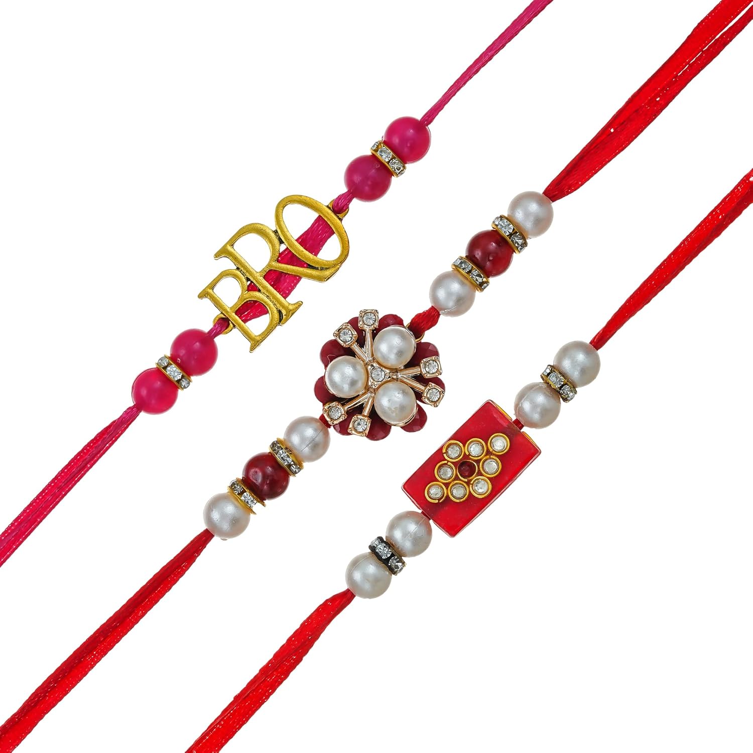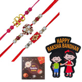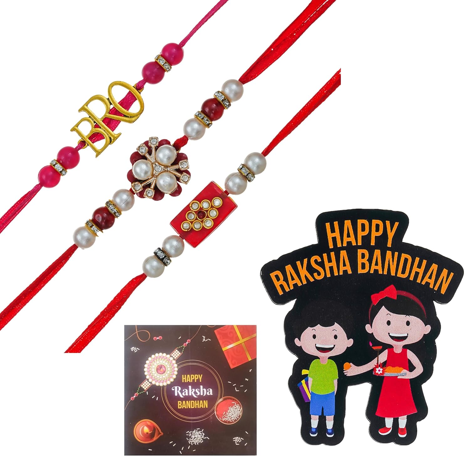 Webelkart Premium 3 Pair Designer Rakhi for Bhaiya Bhabhi and Kids with Fridge Magnet,Rakhi for Brother Bhabhi, Raksha Bandhan Gift Pack for Brother Sister with Greeting Card and Roli Chawal