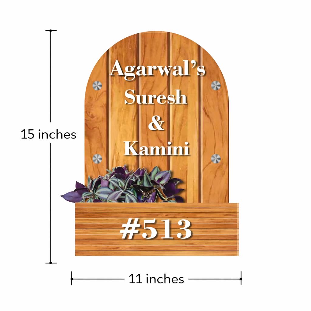 Webelkart Premium Customised Rustic Wooden Name Board with Planter Bracket, Personalised Name Plate for Home Entrance Outdoor, 38 x 28 cm