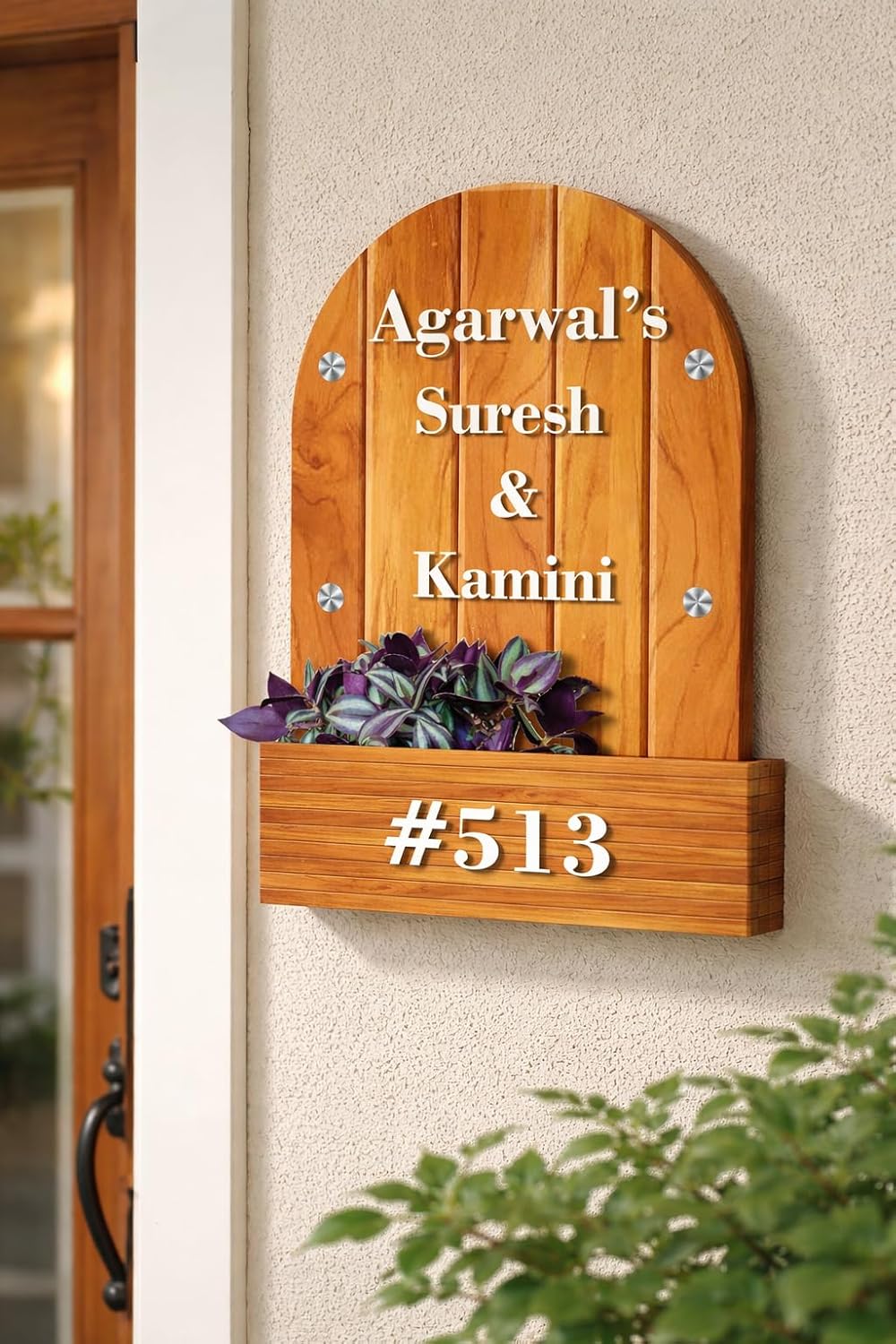 PERSONALISED RUSTIC DESIGN: Premium customised wooden name board with rustic finish adds a charming, traditional touch to your home entrance, featuring personalised engraving for a unique welcome display INTEGRATED PLANTER BRACKET: Comes with a sturdy planter basket bracket that allows you to add greenery and flowers, creating an attractive and...
