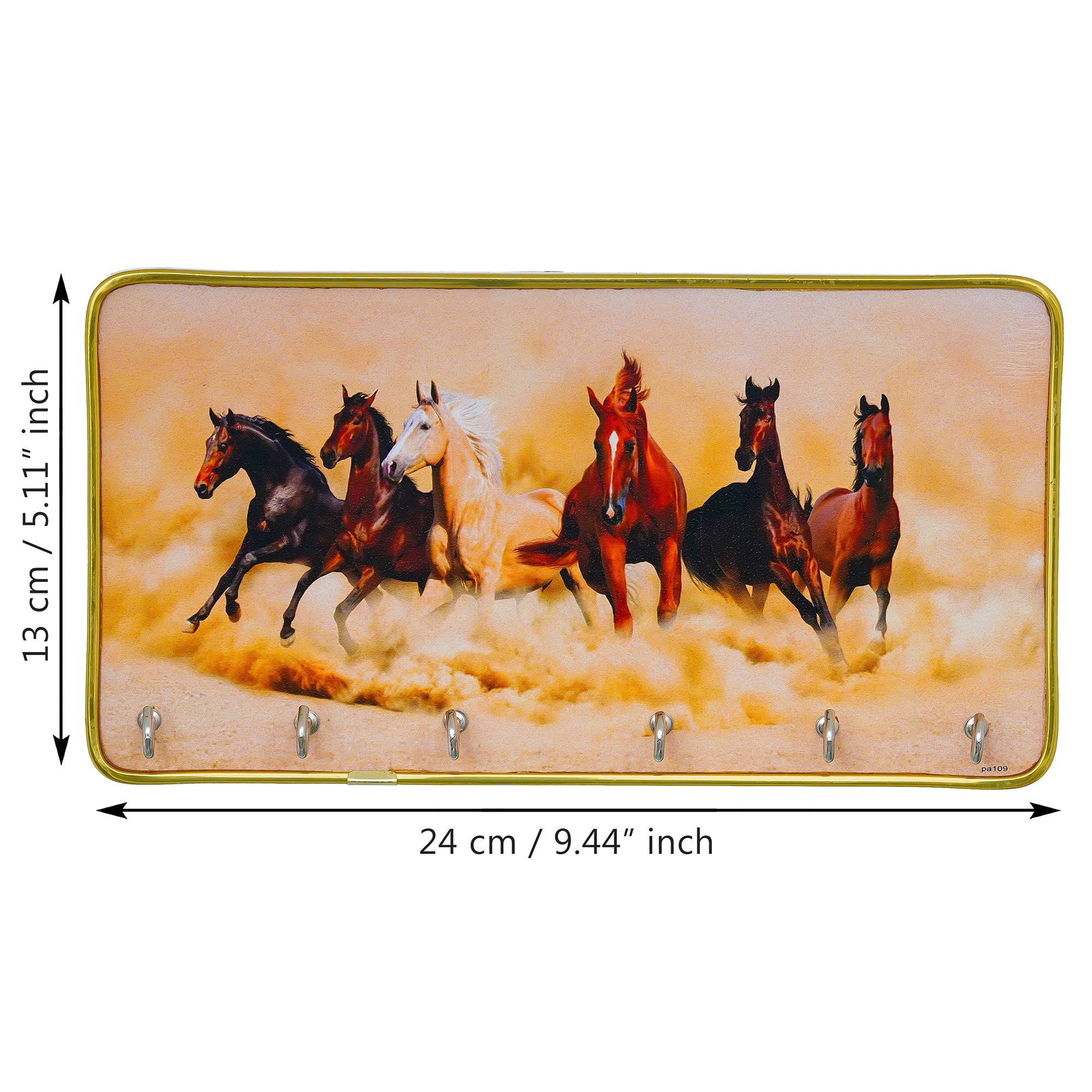 - DESIGN FEATURES: Beautiful wall-mounted key holder featuring a dynamic seven running horses design with gold-toned border frame, perfect for home or office decor