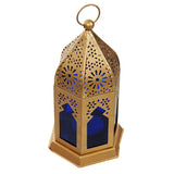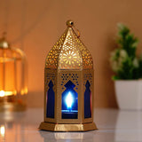 Webelkart Premium Moroccan Gold, Blue Color Metal Iron Lantern Tea Light Holder