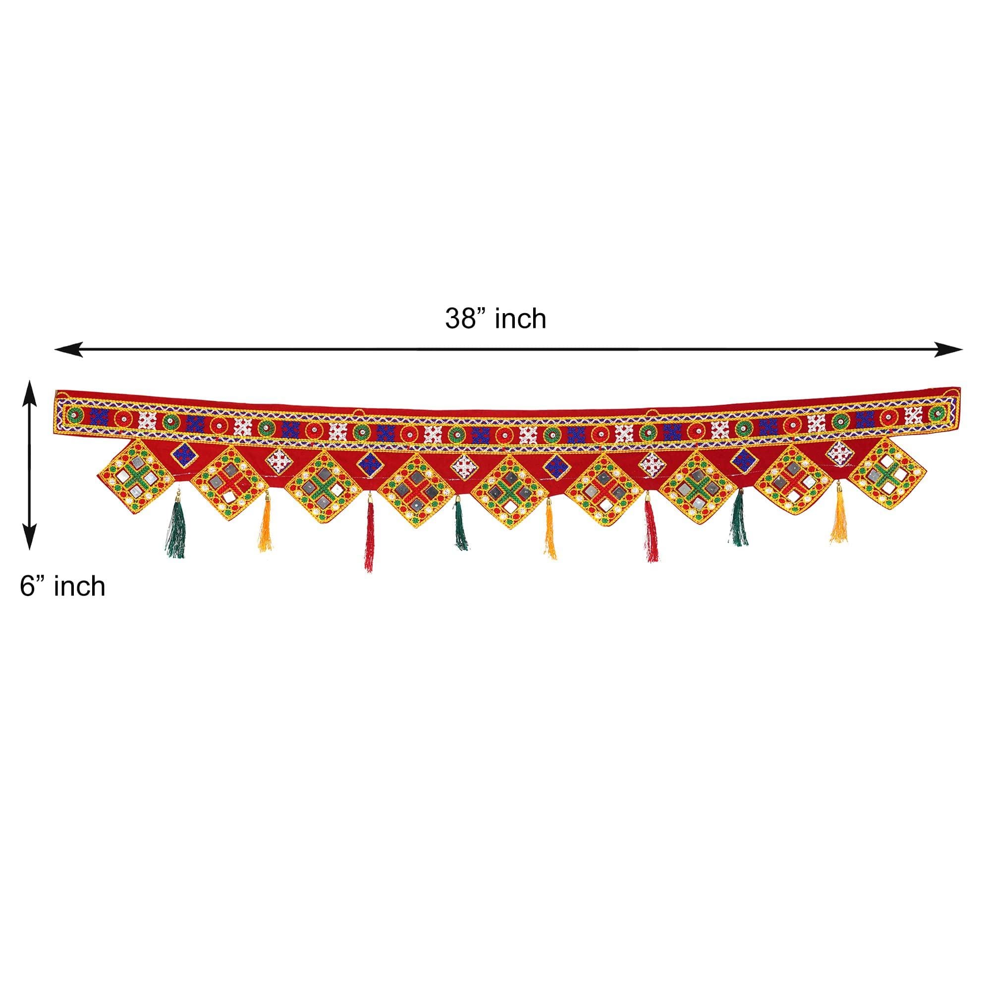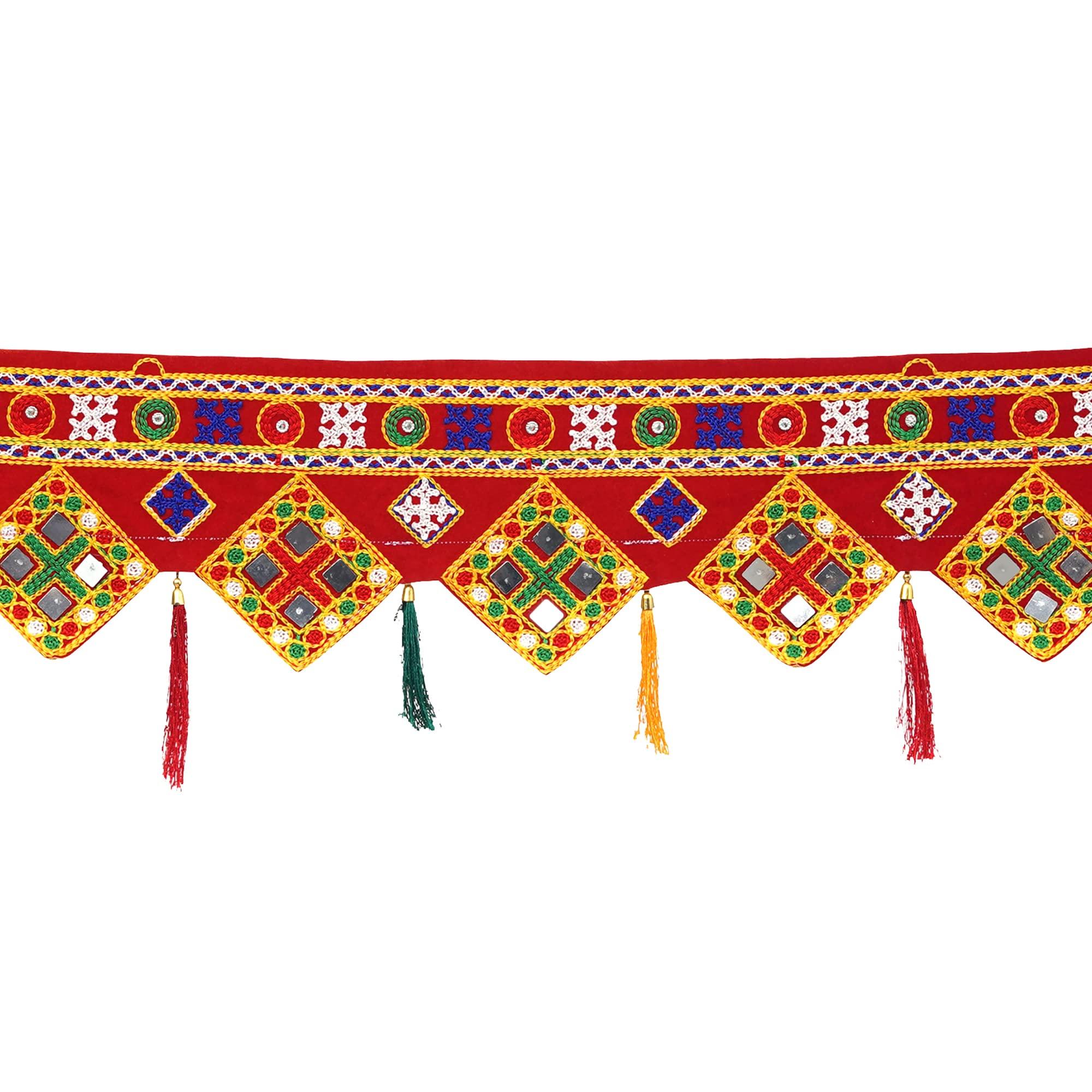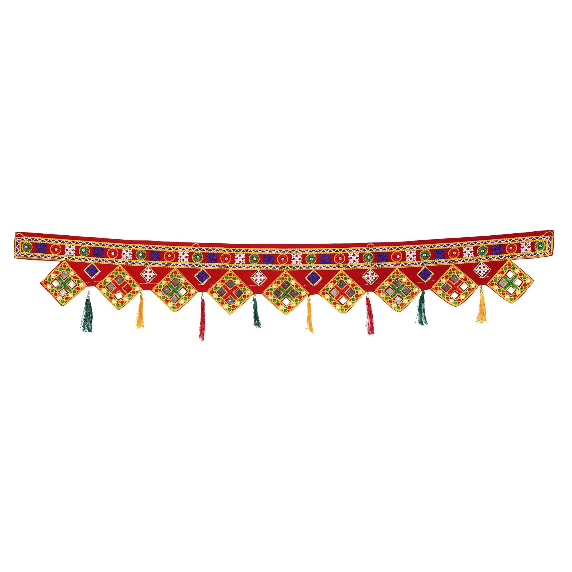 Webelkart Premium Traditional Art Handmade Door Bandarwal toran for Home Main Door/Entrance Door/Home Temple and Diwali Decorations ( Red, Pack of 1)