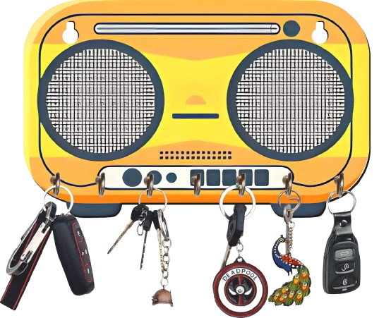 Webelkart Wooden HD UV Printed Cassette Shaped Key Wooden Key Holder for Home/Office Decor,Key Stand for Wall Decor,Designer Key Holder (9.5" X 6" Inches)